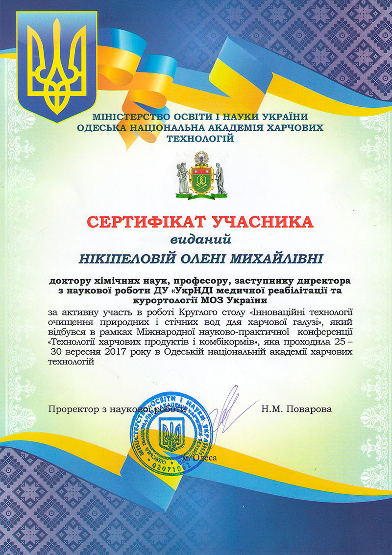 28 вересня на базі кафедри «Технології питної води» Одеської національної академії харчових технологій, в рамках Міжнародної науково-практичної конференції «Харчові технології і комбікорми», пройшов Круглий стіл «Інноваційні технології очищення природних і стічних вод для харчової галузі»